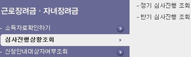일단 국세청 홈택스에 들어가는 법은 다음에서 검색을 하면 쉽게 되구요. 어려울 것도 없습니다. 그리고 나서 조회메뉴를 통해서 발급에 대한 사항을 보시면 됩니다. 근로장려금 말고도 자녀장려금도 볼 수가 있어요. 5월 정기신청을했던 분들은 심사진행상황조회를 해서 이걸로 알아보시면 되겠습니다.