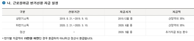 이게 자녀장려금 지급일도 같아서 추석전 제2의 보너스라는 말도 들리더라구요. 2019의 근로장려금에 대해서 지급일 확인을 해보니, 세무서의 일정에 따라서 지역별로 좀 차이가 납니다. 그래도 늦어도 9월 말까지는 전부 지급이 완료가 된다고 합니다. 정기신청에 대한 이야기구요. 늦게 신청하신 분들은 이번 정기신청분이 다 지급되고 나면 다시 또 나옵니다.