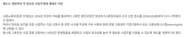 그리고 이번에 발표 내용을 보니, 청년의 추가고용장려금 대상을 6개월 고용유지를 해야한다는 부분이 추가가 되었습니다. 이게 추가된 것은 중소기업이 친인척을 채용하는 부정 수급이 있었기 때문이라고 합니다.