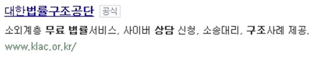 그럼 내용을 알아보죠. 방식은 바로 대한법률구조공단을 이용한 무료상담입니다. 일단 명칭은 알아두셔야겠죠? 다음넷, 혹은 네이버에서 검색을 하셔도 되구요. 아니면, 직접 사이트를 입력해서 들어가는 방법이 있습니다.
